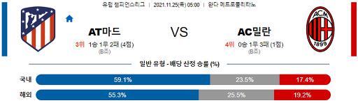 챔피언스리그 11월 25일 05:00 AT 마드리드 : AC 밀란