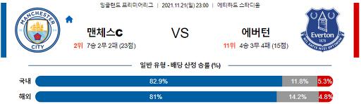 프리미어리그 11월 21일 23:00 맨체스터 시티 : 에버턴