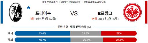 분데스리가 11월 21일 23:30 SC 프라이부르크 : 프랑크푸르트