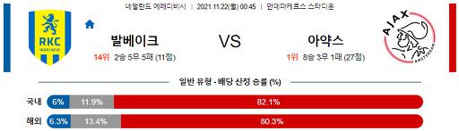 에레디비시 11월 22일 00:45 RKC 발베이크 : AFC 아약스