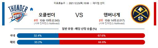 12월 23일 NBA분석 오클라호마시티 : 덴버
