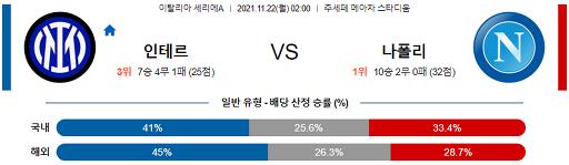 세리에A 11월 22일 02:00 인터 밀란 : SSC 나폴리