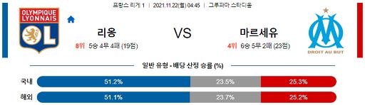 리그앙 11월 22일 04:45 올랭피크 리옹 : 올림피크 마르세유