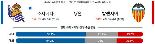 프리메라리가 11월 22일 05:00 레알 소시에다드 : 발렌시아