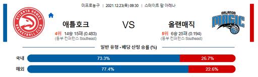 12월 23일 NBA분석 애틀랜타 : 올랜도
