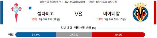 프리메라리가 11월 20일 22:00 셀타 비고 : 비야레알