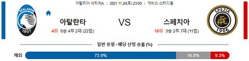 세리에A 11월 20일 23:00 아탈란타 BC : 스페치아 칼초