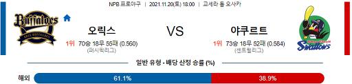 11월 20일 18:00 NPB 오릭스 : 야쿠르트