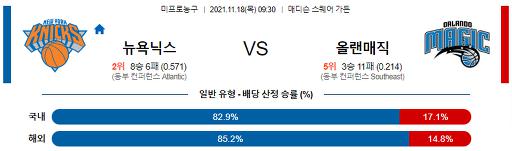 11월 18일 09:30 NBA분석 뉴욕 : 올랜도