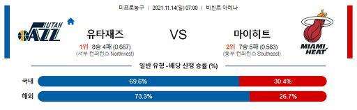 1차전 맞대결 에서는 마이애미가(11/7) 홈에서 118-115 승리를 기록했다. 지미 버틀러(26득점, 6어시스트, 3리바운드)가 에이스의 위엄을 선보였고 3명이 20득점 이상을 기록하는 강력한 주전 라인업의 힘을 보여준 경기. 트리플 더블을 기록한 카일 라우리(20득점, 10어시스트, 12리바운드)의 활약 속에 백코트 자원들의 유기적인 팀플레이가 나타났으며 뱀 아데바요(17득점, 6리바운드)와 드웨인 데드먼이 골밑을 지배했던 상황. 또한, 타일러 헤로(29득점), 던컨 로빈슨의 외곽포 지원이 나오면서 상대의 추격을 저지할수 있었던 승리의 내용. 반면, 유타는 도노반 미첼(37득점)이 분전했지만 루디 고베어(8득점, 8어시스트)의 부진으로 리바운드 싸움에서 밀렸던 경기.왜 자신이 리그에서 공수조화가 가장 뛰어난 스윙맨으로 평가되는지 이유를 알수있게 해주는 경기력을 선보이고 있는 지미 버틀러는 이전시즌 유타와 최종전에서 3득점 8어시스트 10리바운드로 크리플 더블급 활약을 선보였고 올시즌 1차전에서도 상대전 강점을 이어갔다. 지미 버틀러가 출전 한다면 승부는 안개속으로 빠질수 있는 만큼 핸디캡에서 욕심은 금물이 된다.