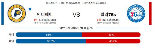 11월 14일 NBA분석 인디애나 : 필라델피아