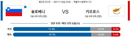 월드컵예선전 11월 14일 23:00 슬로베니아 : 키프로스