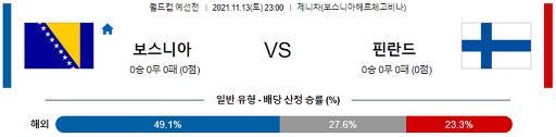 월드컵예선전 11월 13일 23:00 보스니아 헤르체고비나 : 핀란드