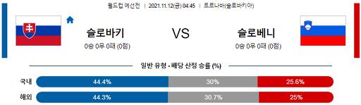 월드컵예선전 11월 12일 04:45 슬로바키아 : 슬로베니아