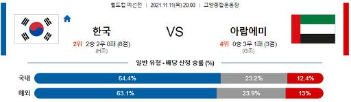 WCQL 11월 11일 20:00 대한민국 : 아랍에미리트