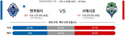 MLS 11월 8일 08:00 밴쿠버 화이트캡스 : 시애틀 사운더스 FC