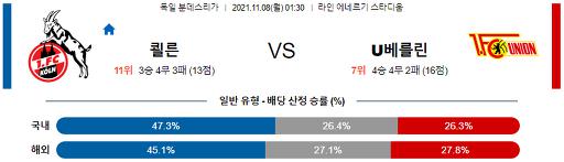 분데스리가 11월 8일 01:30 FC 쾰른 : 유니온 베를린