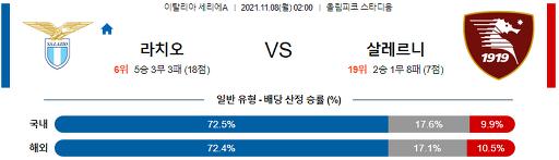세리에A 11월 8일 02:00 SS 라치오 : US 살레르니타나