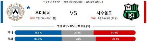510 세리에A 11월 7일 23:00 우디네세 칼초 : US 사수올로 칼초 2021.11.06 747