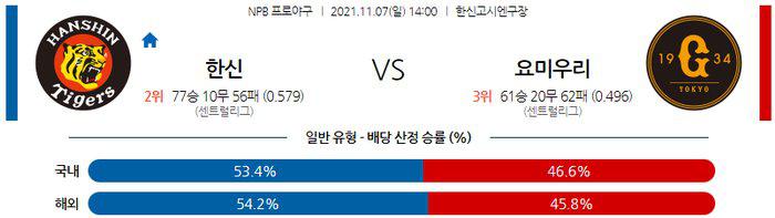 전일 1차전에서 0-4 패배를 기록한 한신이지만 금일 경기 선발 싸움에서 한신이 우위에 있다. 센트럴리그 다승 1위, 평균자책점 2위를 기록한 아오야기 코요우 투수 이후 최고 시속 163km에 달하는 패스트볼을 앞세워 시즌 42세이브를 기록하며 2015년 오승환이 세운 41세이브 기록을 깨고 구단의 역사를 새롭게 쓴 마무리 수아레즈 까지 총력전에서 나서는 상황. 한신 승리 가능성을 추천 한다.