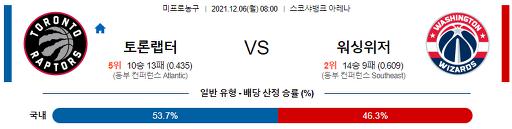12월 6일 08:00 NBA분석 토론토 : 워싱턴