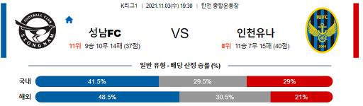 K리그1 11월 3일 19:30 성남 FC : 인천 유나이티드 FC