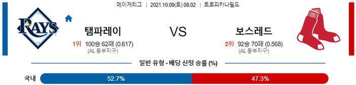 【MLB】 10월 9일 탬파베이 vs 보스턴 레드삭스