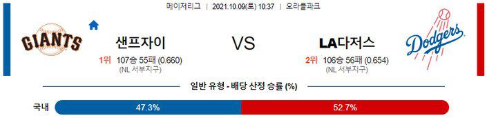 【MLB】 10월 9일 샌프란시스코 vs LA 다저스