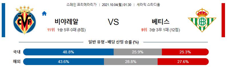 【프리메라리가】 10월4일 비야레알 CF vs 레알 베티스