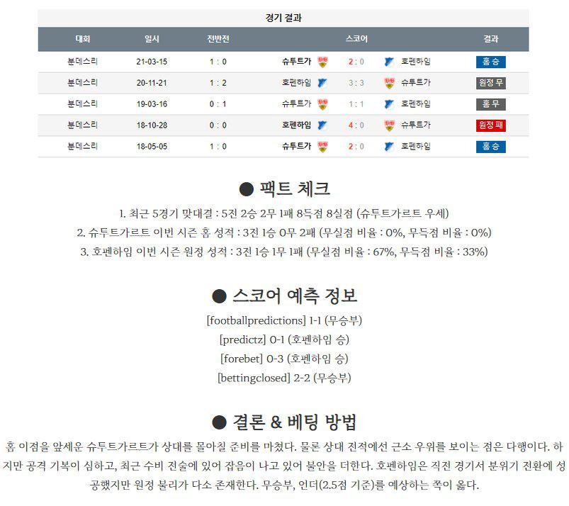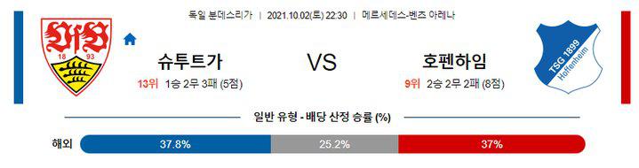 분데스리가 10월 2일 22:30 VfB 슈투트가르트 : TSG 1899 호펜하임