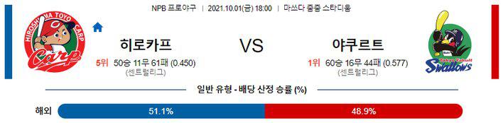【NPB】 10월 1일 히로시마 vs 야쿠르트