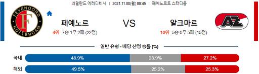 에레디비시 11월 8일 00:45 페예노르트 : AZ 알크마르