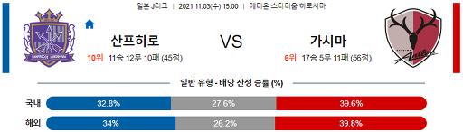 J리그 11월 3일 15:00 산프레체 히로시마 : 가시마 앤틀러스