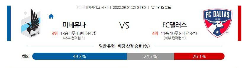 열람중 【MLS】 9월04일 미네소타 vs 댈러스 2022.09.03 691