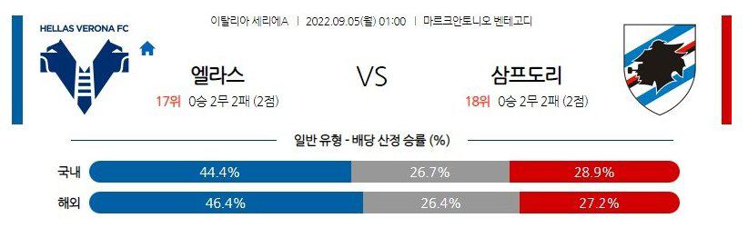 【세리에A】 9월5일 엘라스 vs 삼프도리아