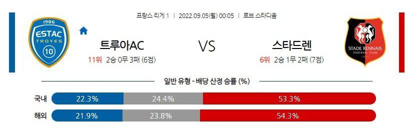 [리그앙] 9월5일 트루아 vs 스타드렌