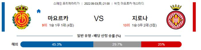 스페인 프리메라리가 9월 3일 21:00 RCD 마요르카 : 지로나 FC