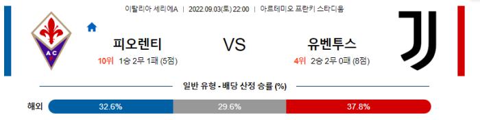 이탈리아 세리에A 9월 3일 22:00 ACF 피오렌티나 : 유벤투스