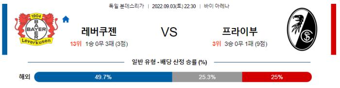 열람중 독일 분데스리가 9월 3일 22:30 레버쿠젠 : SC 프라이부르크 2022.09.02 762