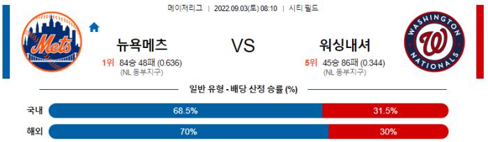 9월 3일 08:10 MLB 뉴욕메츠 : 워싱턴 MLB분석