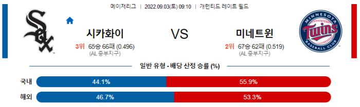 9월 3일 09:10 MLB 화이트삭스 : 미네소타 MLB분석