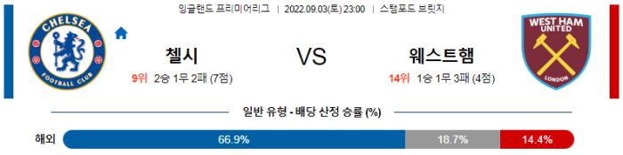 잉글랜드 프리미어리그 9월 3일 23:00 첼시 : 웨스트햄