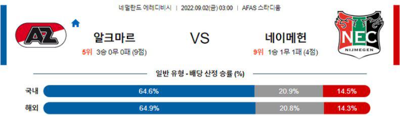 [핸디캡 / -1.0] AZ 알크마르 승 (추천 x)