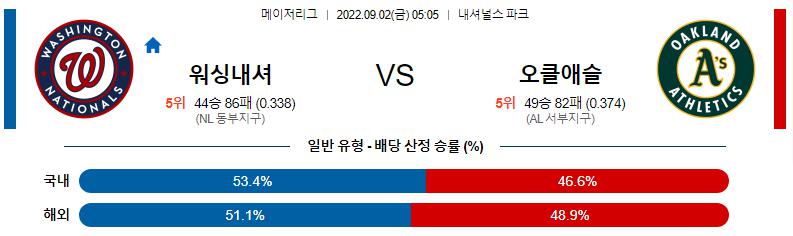 9월 2일 05:05 MLB 워싱턴 : 오클랜드 MLB분석