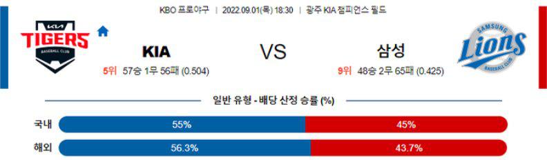 기아의 승리를 점친다. 원태인이 5~7월 다소 불운했던 것을 보상받고 있는 분위기지만, 경기 내용은 전혀 긍정적이지 못하다. 직구의 위력에서 이의리가 상당부분 앞서 있는 상황이며, 타선의 성과도 삼성보다는 기아쪽으로 기우는 것이 사실. 이틀의 휴식 이후 불안했던 기아 불펜도 힘을 되찾은 듯한 모습을 보여주고 있으며, PS를 앞두고 가장 중요한 시점에서 매 경기 총력전을 염두에 두고 경기를 운영할 가능성이 높다.