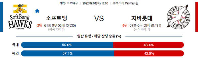 [NPB] 9월1일 소프트뱅크 vs 지바롯데