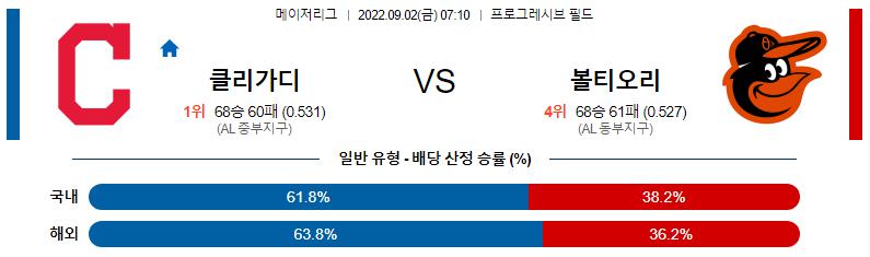 9월 2일 07:10 MLB 클리블랜드 : 볼티모어 MLB분석