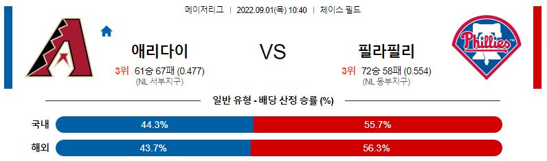 9월 1일 10:40 MLB 애리조나 : 필라델피아 MLB분석