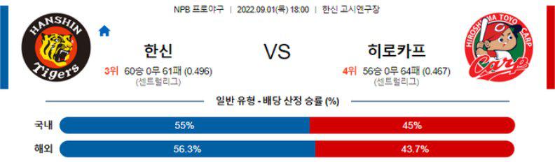 한신의 승리를 점치는 것이 좋겠다. 사이키의 로테이션을 여유롭지만 철저하게 지켜주면서 사이키의 호투가 이어지고 있는 분위기. 노무라는 지난 경기 잘 던지기는 했으나 아직도 직구의 피안타율이 너무 높게 형성되고 있다는 것이 문제다. 히로시마의 타선이 코로나 사태 이후에는 하락세고, 지난 경기 중심 타선의 활약도 한신이 좋았다고 보는 것이 옳다. 노무라의 좌타자 상대 전적이 변수이기는 하나, 지난 경기 소모가 많았던 불펜이 부진할 가능성도 충분하다.