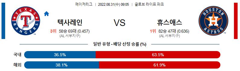 8월 31일 09:05 MLB 텍사스 : 휴스턴 MLB분석